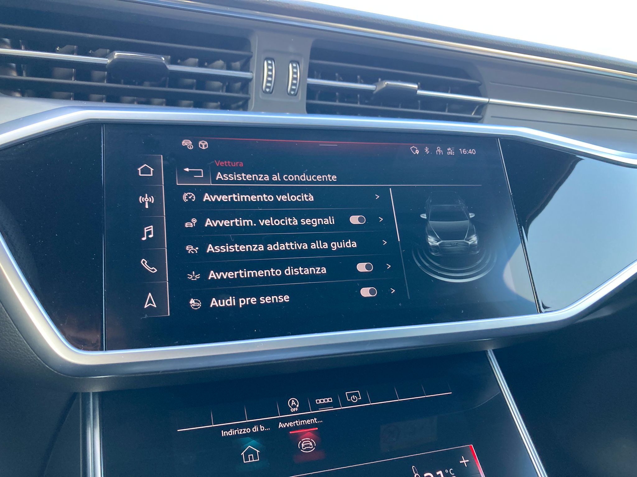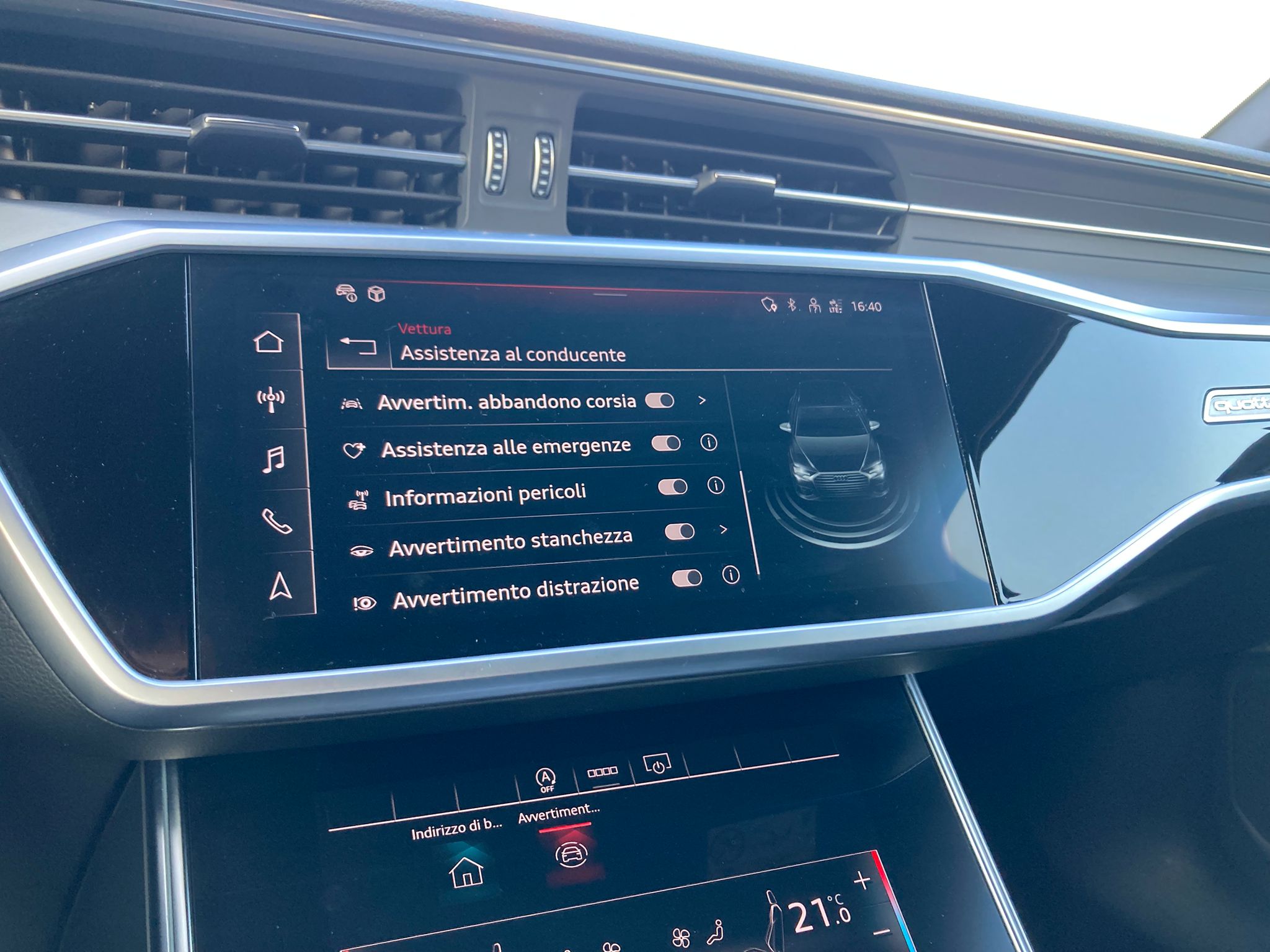 • Driver Assistance Systems: Adaptive Cruise Control, Sistema di parcheggio automatico, Blind spot monitor, Controllo elettronico della corsia, Riconoscimento segnali stradali, Sistema avviso distanza